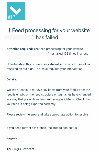 Double-check the feed URLs used in your Luigi’s Box setup and confirm they point to the same locations where you currently store and maintain your data.