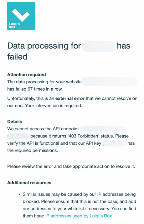 If you are using a synchronization method not listed above, please ensure that the source is accessible from Luigi’s Box IP addresses.