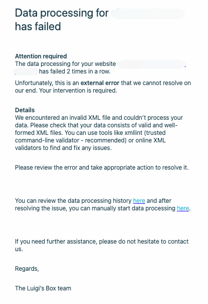 This most likely means that we are downloading the data while the server is regenerating the document and it ends prematurely. We recommend adjusting the synchronization schedule under Catalog → Feed Planning, and planning the sync times outside of the feed-generation window (with a buffer) to avoid overlap.