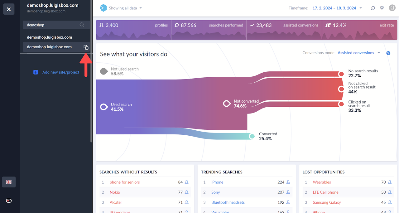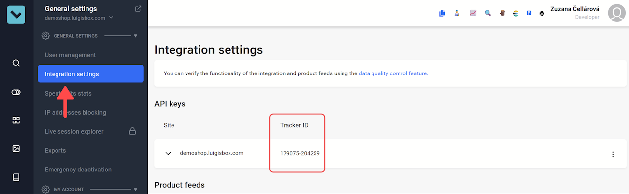 ℹ️ Tracker ID is a unique public key assigned to your site in Luigi's Box search analytics.